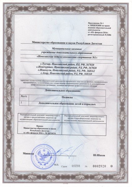 Полное наименование образовательной организации* Муниципальное бюджетное учреждение дополнительного образования "Новолакская детско-юношеская спортивная школа №1"